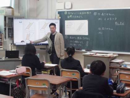 今日は、平行四辺形の面積を求める問題で、高さが分かりづらい場合どのようにして面積を求めるのか。について考えました。