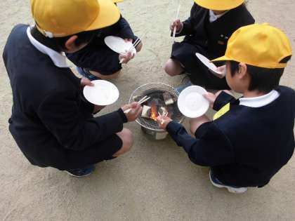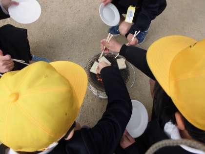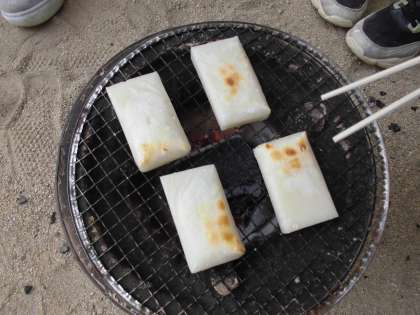 お餅をよ〜く見ておかないと、焦げてしまいます。今日は炭によく火がついています。