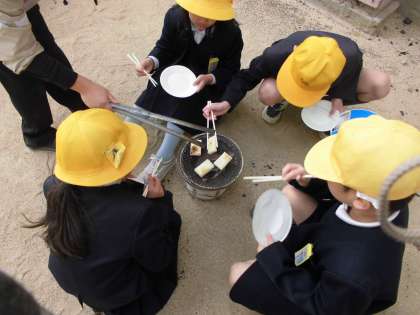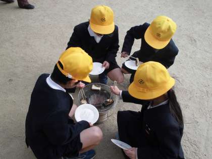 「上手に焼くのは難しいな〜」それも勉強です。お餅から目を話さず真剣に焼いている姿が見られました。さ〜あ もうそろそろかな!?