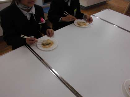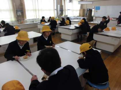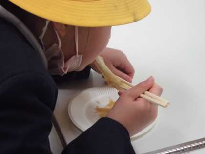 焼けたお餅は、家庭科室で味つけです。砂糖醤油ときな粉で味つけします。「めっちゃおいしい!」という声がたくさん聞こえました。 火の加減が難しかったという声も聞こえました。それも勉強です。体験をしてみていろいろなことを感じました。