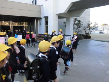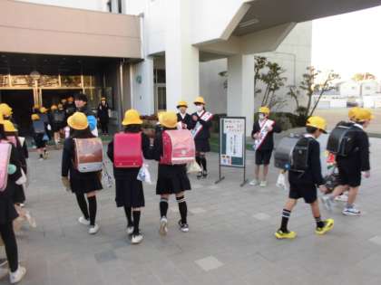 寒さに負けず元気に集団登校しています。今日は水曜日。あいさつデーです。今日のミッションは、「友だち10人に笑顔であいさつしよう!」です。門の前でたくさんあいさつを交わす姿がたくさん見られました。