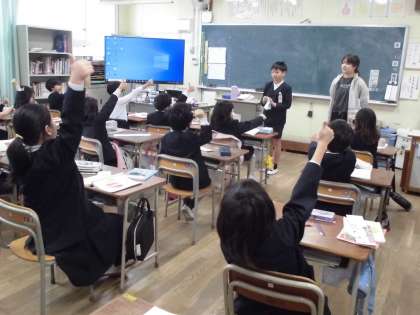 「心が動いたことを詩で表そう」の学習です。生活の中で楽しかったこと、驚いたこと、わかったこと等を集めて、詩に表します。今日はクラスでの発表会です。お互いに感想を伝え合いました。
