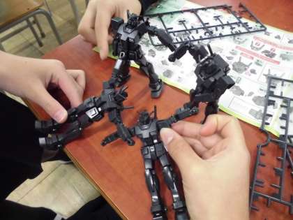 マテリアルリサイクルについて学びました。マテリアルリサイクルとは、使用済みのプラスティックを破砕・溶融、固形化して再利用を行うリサイクルです。6年生はさっとプラモデルを組み立ていろいろなポーズで楽しみました。