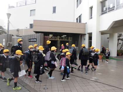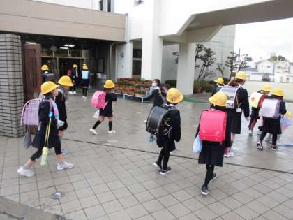 今日もお天気はあまりよくないですが、正門前では元気なあいさつができました。また集団登校で登校することもできました。