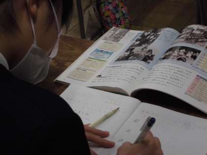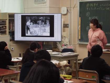今日の学習は、「戦争中、人々はどのような生活をしていたのでしょうか」について、調べてまとめます。現在の学校生活とは、全然違う様子を映像で観て驚いていました。