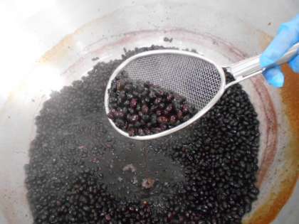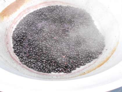 黒豆を作っているところです。黒豆は、おせち料理の一つです。黒豆には、「まめに(まじめに)働き、まめに(健康に)くらせますように」という願いがこめられています。おせち料理は、一年の幸せを願って食べる正月の行事食です。