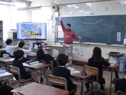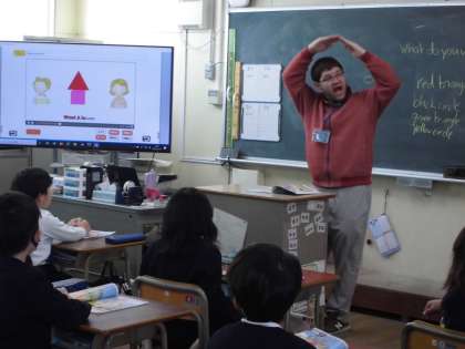 「What do you want」がテーマの学習です。今日は△や□などの形に着目して発音や読み方等の学習をしました。