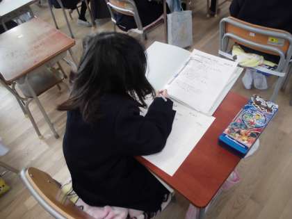 うまれた時の様子をお家の人にインタビューしました。それをもとに発表の原稿にまとめています。
