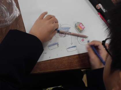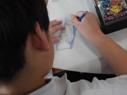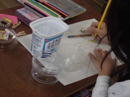 いろいろなカップを使って小物づくりに挑戦します。今日はどんな作品にしようか設計図をかいています。