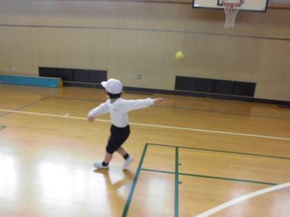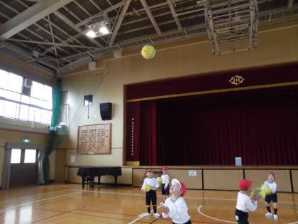 ボールで遊ぼう!!高くボールを投げ上げてキャッチ!手を何回叩けるかな!?クルンっと回れるかな!?壁に向かって思いきりボールを投げよう! いろいろな運動をして遊びました。