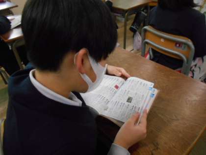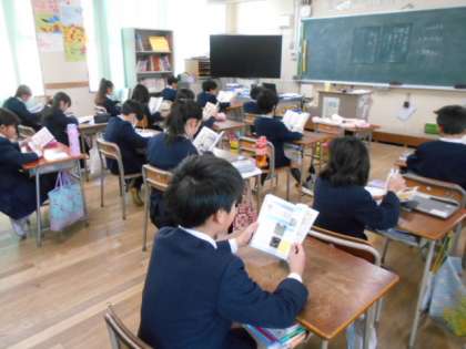 3年生の教室です。みんな静かに読書をしています。