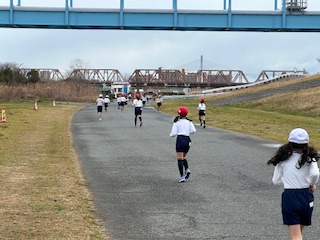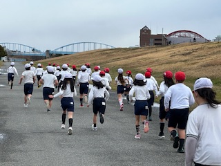 インフルエンザの影響で、先週かけ足大会に参加できなかった3年生のかけ足大会を実施しました。心配しました雨も上がって、3年生は元気いっぱい淀川の河川敷を駆け抜けました。
