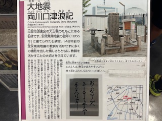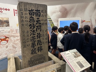 津波の恐ろしさを伝える石碑と、大阪にも大きな被害が予想されている南海トラフ地震が近い将来起こる可能性が非常に高いと説明していただきました。