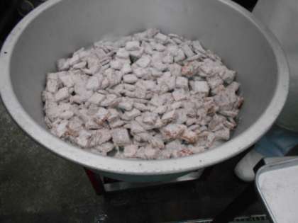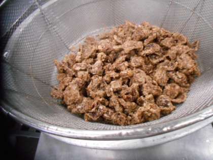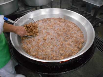 今日の給食の「くじらのたつたあげ」を油であげているところです。