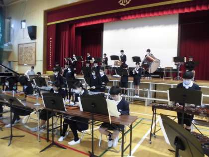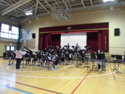 講堂では、6年生が学習参観に向けて練習をしています。先生の指揮にあわせてみんなとても上手に演奏します。さすが6年生です。写真は♪アラジンメドレーを演奏しているところです。本番が楽しみです。