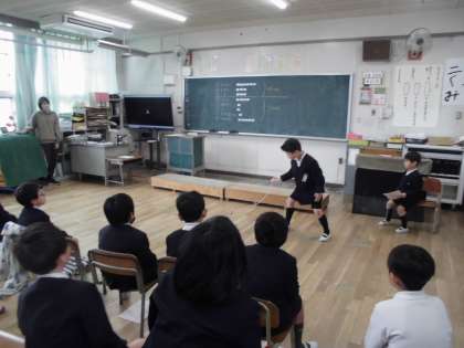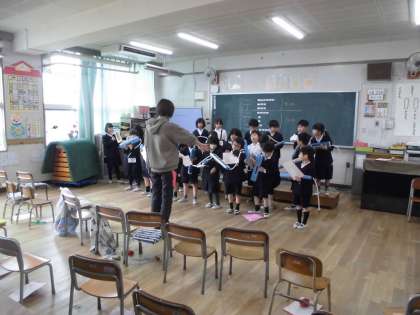 こまやけん玉の発表を見学しました。歌や鍵盤ハーモニカの演奏もあり、盛りだくさんの内容です。