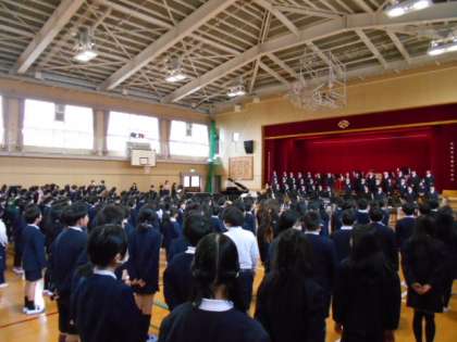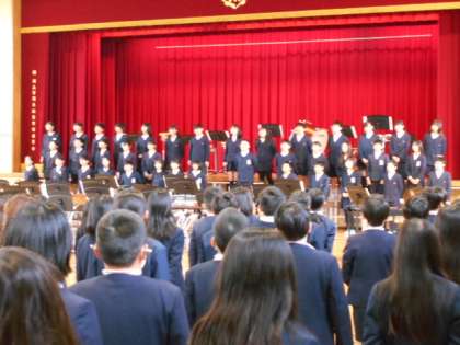 みんなで歌おう(校歌)の時間です。1年生から6年生まで一緒に校歌を歌うのはこれが最後です。みんな思いをかみしめながら心を込めて歌いました。