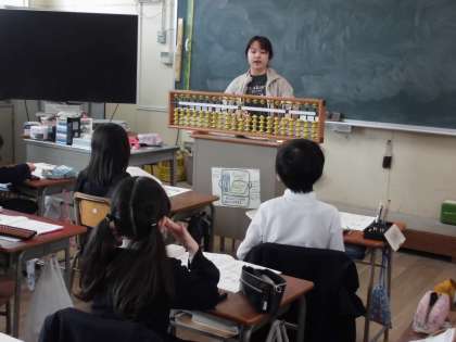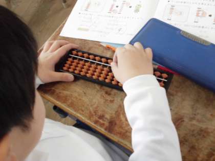 今日の算数の学習はそろばんの学習です。たし算やひき算などそろばんの玉を動かして確認しました。