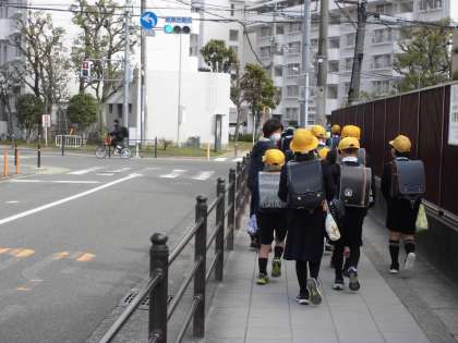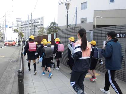 今日は今年度最終の分団集会、集団下校が行われました。分団集会後は、新しい集団登校の班長さんを先頭にして並んで下校しました。6年生は一番後ろから、並べているかどうかチェックしてくれています。明日からは新しい班長さんを中心にして、しっかり集団登校をしてください。