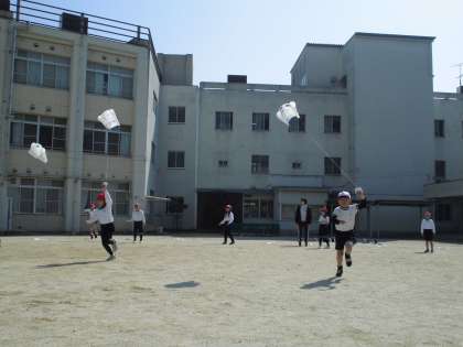 寒かったり天候が悪かったりしたため、延期になっていた凧揚げがやっとできました。