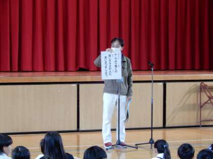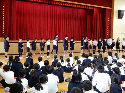 最後に、「10人よりたくさんの友達にあいさつをしよう!」という、今週の目標が話されました。とっても、明るく雰囲気の良い児童朝会でした。これからが楽しみです。