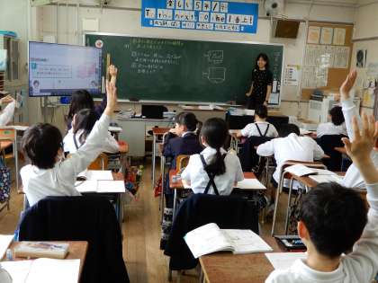 5年生では、算数の体積の学習を行っていました。4年生で学習した面積を復習しながら、体積の学習を進めていました。5年生は、いつ授業を見に行っても、学習に集中する態度が見られ、これからの成長が楽しみです。