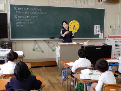 2年生では、時計を使った「時間の学習」をしていました。時計を見ながら、時間を考えるのはとても大切な学習です。ぜひ、お家でも時間の問題を出してあげてください。