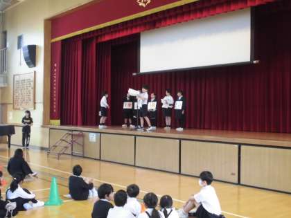 今日の児童集会は、たてわり班で「並び替えゲーム」を行いました。