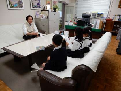 実際に、校長先生の椅子に座って、「プチ校長体験!」