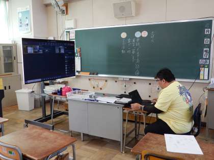 淀川小学校と大東小学校をオンラインでつないで、互いの学校紹介ができます。