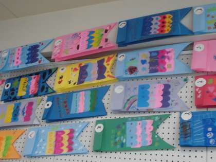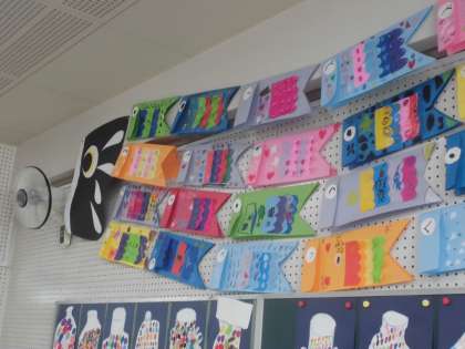 子どもたち一人ひとりの「こいのぼり」がつながって、大きな大きな学級の「こいのぼり」になっています!