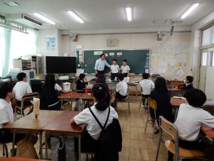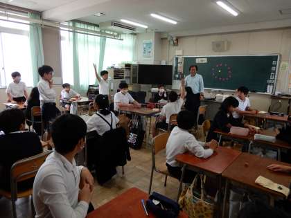 6年生の教室で行われた、校長先生による算数の特別授業。