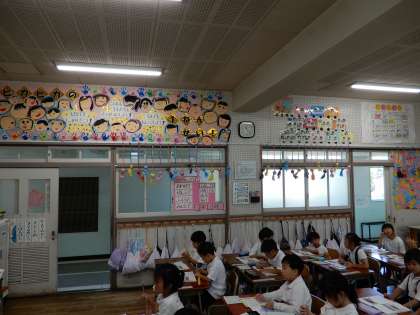 1年生35人の子どもたち。教室は、子どもたちでいっぱいです。