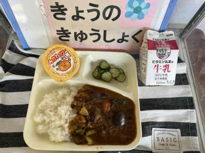 今日の「夏野菜のカレーライス」は、かぼちゃ、なす、トマト、ピーマンといった夏野菜がたくさん入ったカレーライスでした。