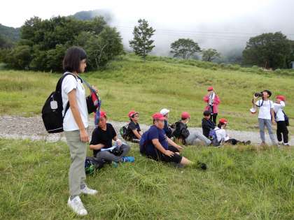 (写真下)高丸山を目指しますが、途中で休憩です。みんな頑張って、坂道を登ります。