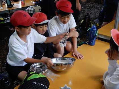 (写真下)ついにアイスクリームの完成です。どの班も、すごく美味しそうなアイスクリームができました。
