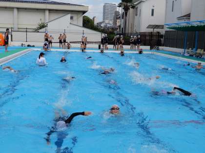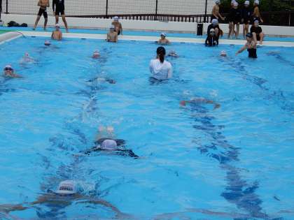 台風が過ぎ去り最高の天気の中、子どもたちはきれいなプールで学習を進めていきました。