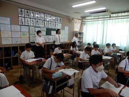 3人の中学校の先生と教頭先生が来校してくださり、淀っ子たちの授業の様子を丁寧に見てくださいました。