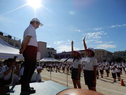 (写真下)選手宣誓です。6年生代表の素晴らしい宣誓の言葉が、運動場に響き渡ります。