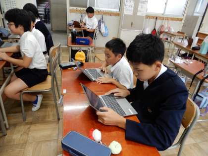 6年生が、プログラミングの技術を学習して、自分だけのオリジナルゲームを作っています。今の6年生は、中学年の頃からの積み上げがあり、タブレットを使うのが抜群に上手です。