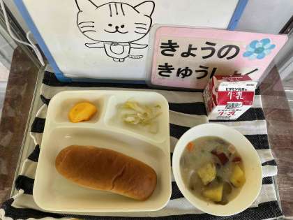 今日の給食では、「柿」と「さつまいも」が登場しました。