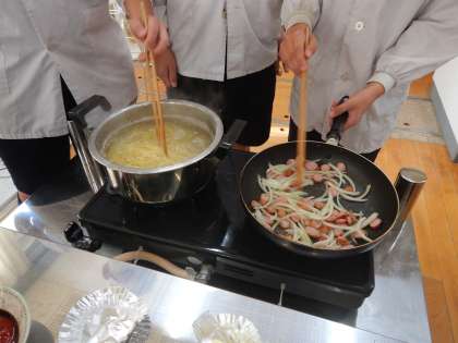 6年生は、家庭科で調理実習を行いました。