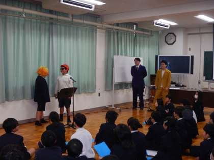 5年生が、よしもとの芸人さんを教室に招待して、交流授業を行いました。