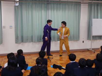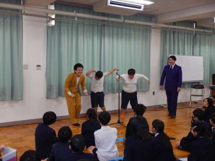 最後に、何と5年生の子どもたちが、プロの漫才師に絡んでまんざいをしてくれました。これがまた大うけして、会場は爆笑の渦に包まれました。