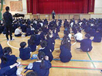 最初に、「校長先生のお話」です。この2学期を振り返りながら、各学年の頑張りや楽しかった思い出を振り返りました。