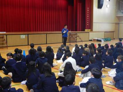 次に、生活指導の先生から、「冬休みの過ごし方」のお話がありました。日が暮れるのが早くなっています。遅くまで遊ばないように気をつけましょう。自転車の乗り方に気をつけましょう。そんな大切な話がありました。