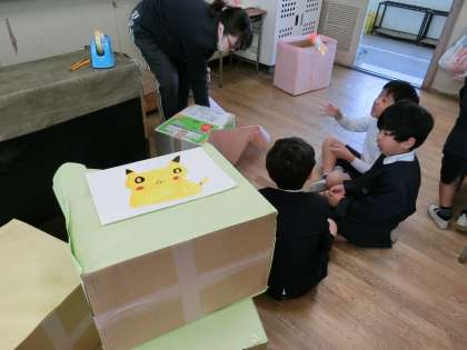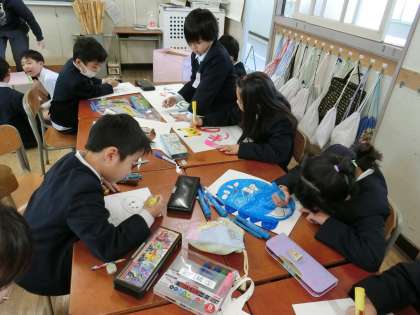 その交流に向けて、2年生がいろいろな「交流ブース」の準備をしています。保育園の子どもたちを楽しませるために、様々なブースを準備して、一緒に遊びながら交流を楽しむ予定です。