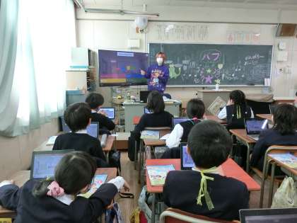 3年2組でも、カフートを使った「1年の総復習クイズ大会」をパソコンを使って行いました。カフートを使うと、どの子もクイズ大会に参加する臨場感を味わうことができます。