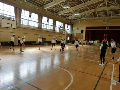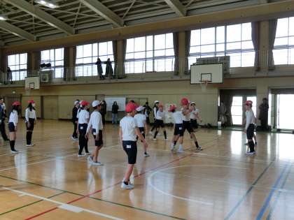 体育館で、バスケットボールとドッジボールのゲームを楽しみました。白熱したしたゲームが多く、見ていても楽しかったです。