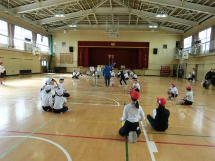 保護者と一緒に、「親子玉入れ対決」をしました。親チームが見事に勝利をおさめました。親子のふれあいを楽しめた瞬間でした。